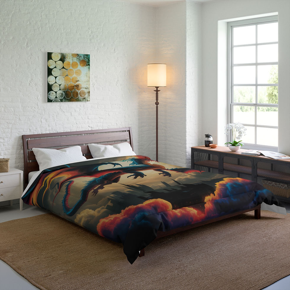 Dragon at Dawn Comforter, Cozy Bedding for Fantasy Lovers, Bedroom Decor