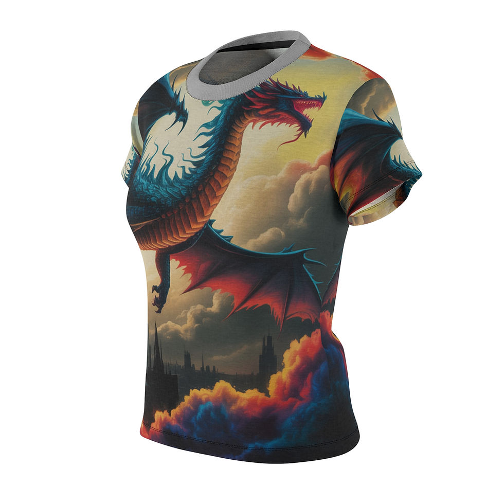 Dragon at Dawn Premium Women's Tee, Fantasy Apparel, Unique Graphic Shirt