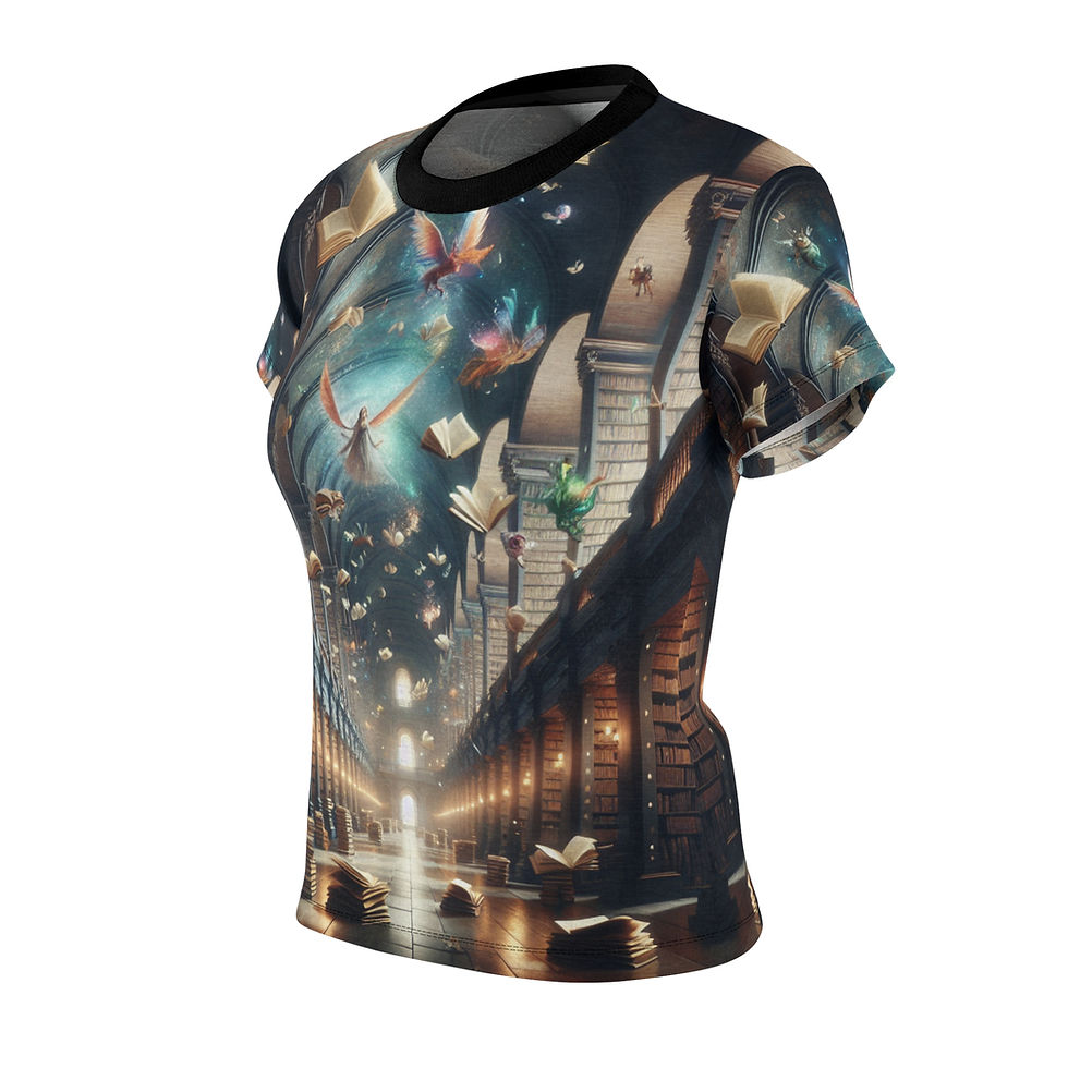 Enchanting Library Premium Women's Tee, Literary Gift, Book Lover Apparel
